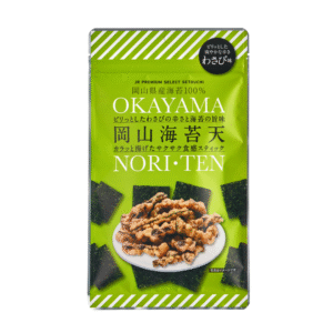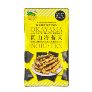 「岡山海苔天」は、旨味たっぷりの岡山県産海苔を100%使用し特製のころもでサクサクに揚げた一品です。風味豊かな素材にサクッとした歯ざわりをお楽しみいただけます。フレーバーはプレーン・わさび・レモンをご用意。軽く持ち運びやすい、食べ比べにもおすすめのお土産です。