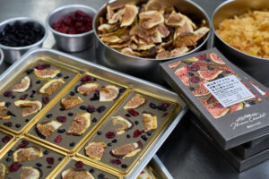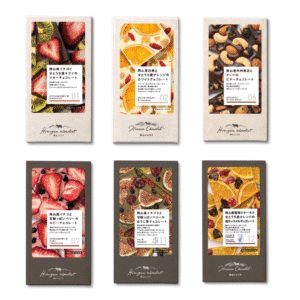 クリーミーなチョコレートの上に、せとうち産のドライフルーツや岡山産素材を散りばめた贅沢ショコラバー。気温が低い時期のみの販売でお問い合わせも多い商品です。ヒルゼンミルキー株式会社で製造され、ドライフルーツのトッピングは手作業。送られた方に喜んでいただける贅沢なチョコレートです。
