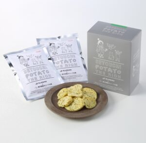 第三回せとうちお土産グランプリ「入賞」した、パッケージもかわいい、岡山駅でも人気のお土産。岡山県の海苔と香川県のオリーブの葉を使用し、瀬戸内感を感じられる贅沢な味わいのポテトチップスです。厚めにスライスされたポテトは食べ応え抜群。デザインもかわいいセンス光るお土産です。