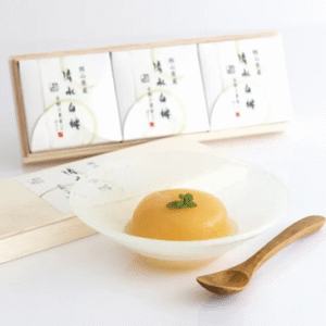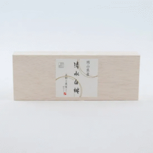 岡山を代表する果物・清水白桃の贅沢なスイーツ「清水白桃ゼリー」は、半分に割った清水白桃の果肉を、清水白桃ピューレをたっぷり使ったゼリーで包み込んだ、気品のある香りと甘み、とろけるような食感が楽しめるゼリー。桐の箱に入って高級感があると大変好評です。
